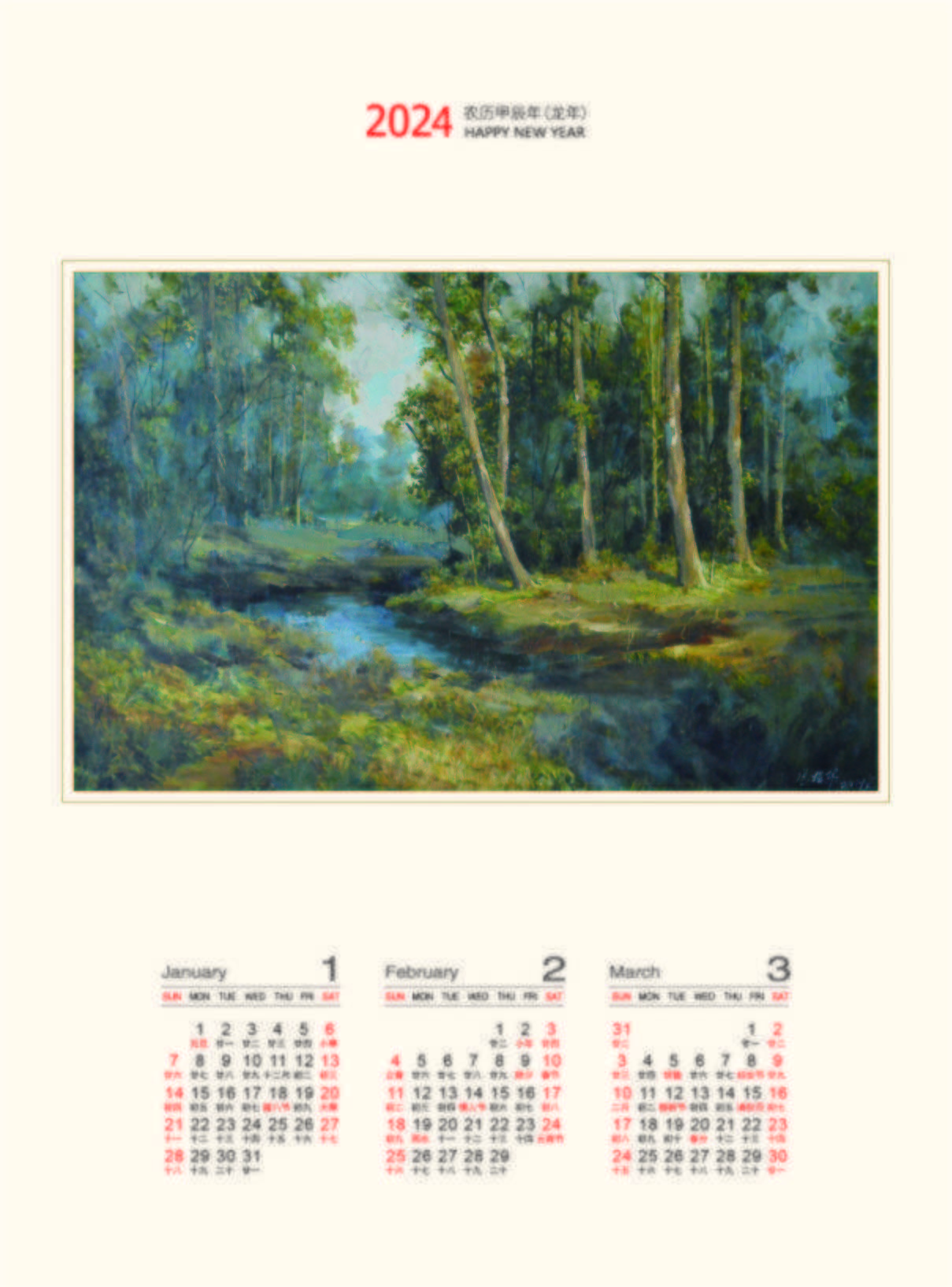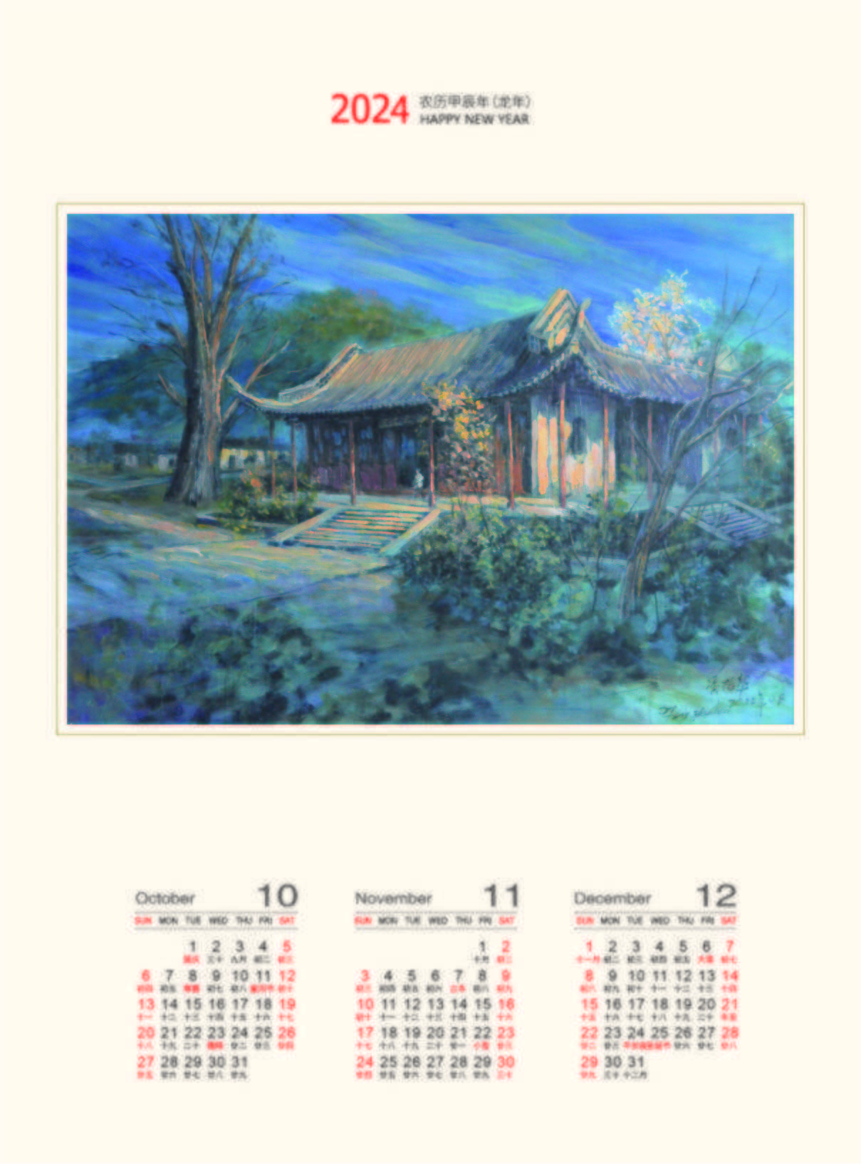 经典油画挂历收藏品–著名油画家冯振华油画作品精选挂历–2023年2024年双年历