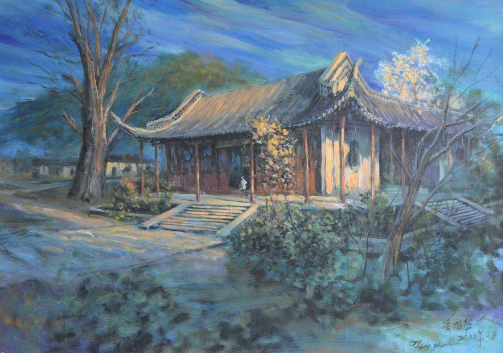 著名油画家冯振华原创风景油画《安定书院的记忆》 采用印象派和意象主义的创作手法,刻画了游子对过往青葱岁月的浓情蜜意。她不仅是一代代省泰州学子们的美好记忆,更是国家承载历史安定、团结稳如磐石,欣欣向荣的象征。